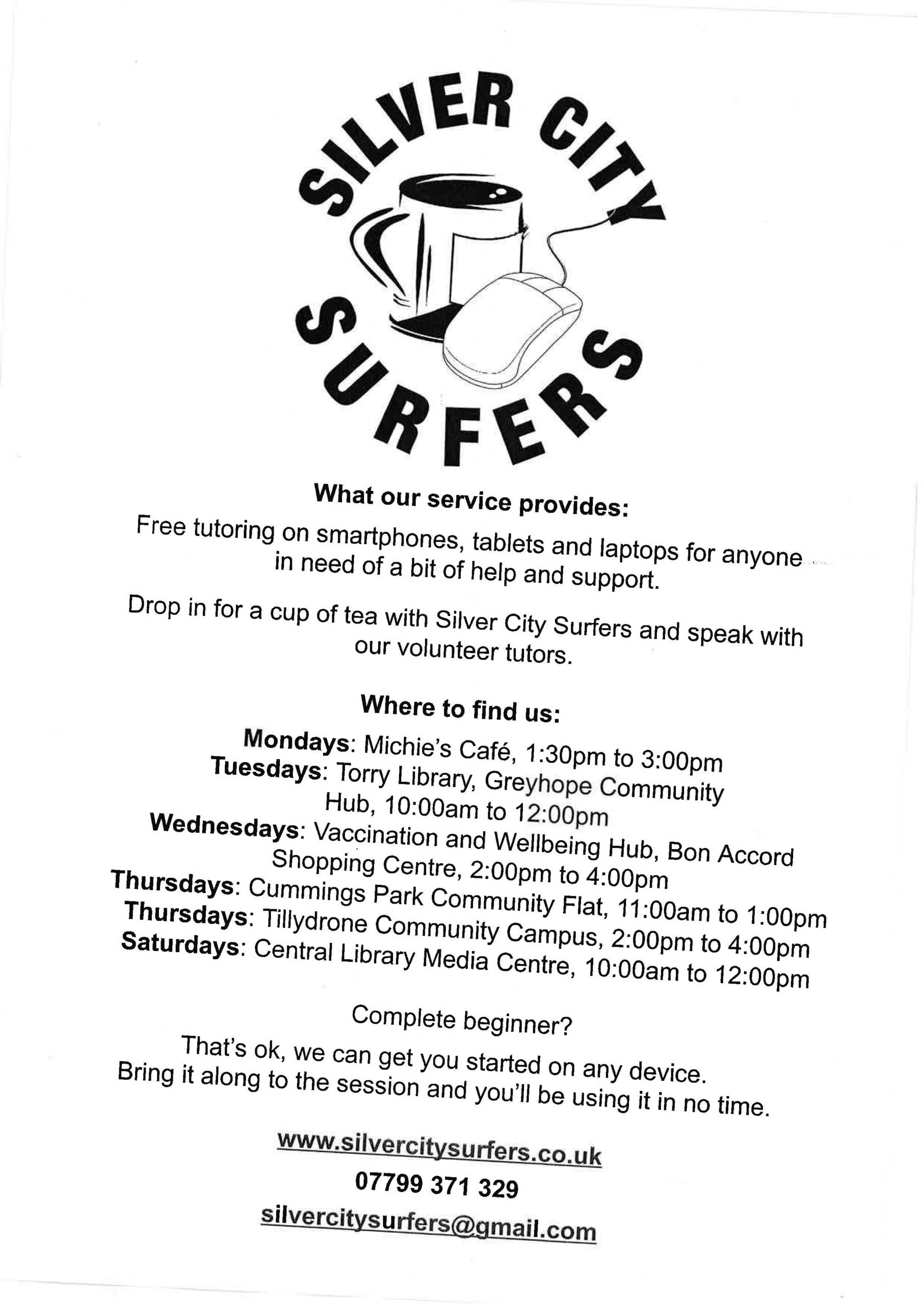 Drop in for a cuppa with Silver City Surfers and speak with the volunteer tutors.