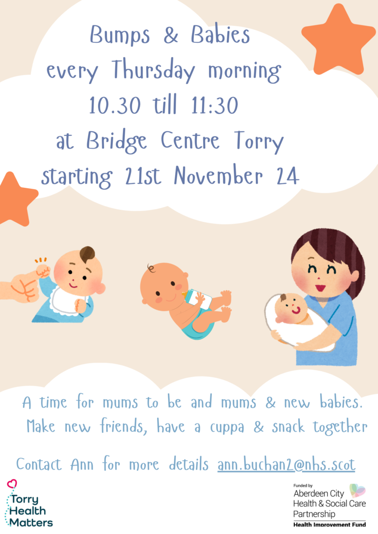 A new group called Bumps & Babies group will start every Thursday at Bridge Centre 10.30 -11.30am starting 21st November onwards.